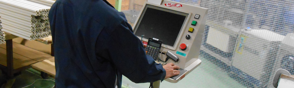 三恵の製品加工の多くは異形押し出し製品長寸法の加工が占めます。
